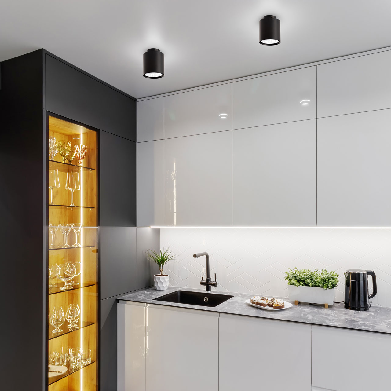 Основание светильника выполнено из сплава алюминия с цинком и обработано по технологии порошкового окрашивания в черный цвет.